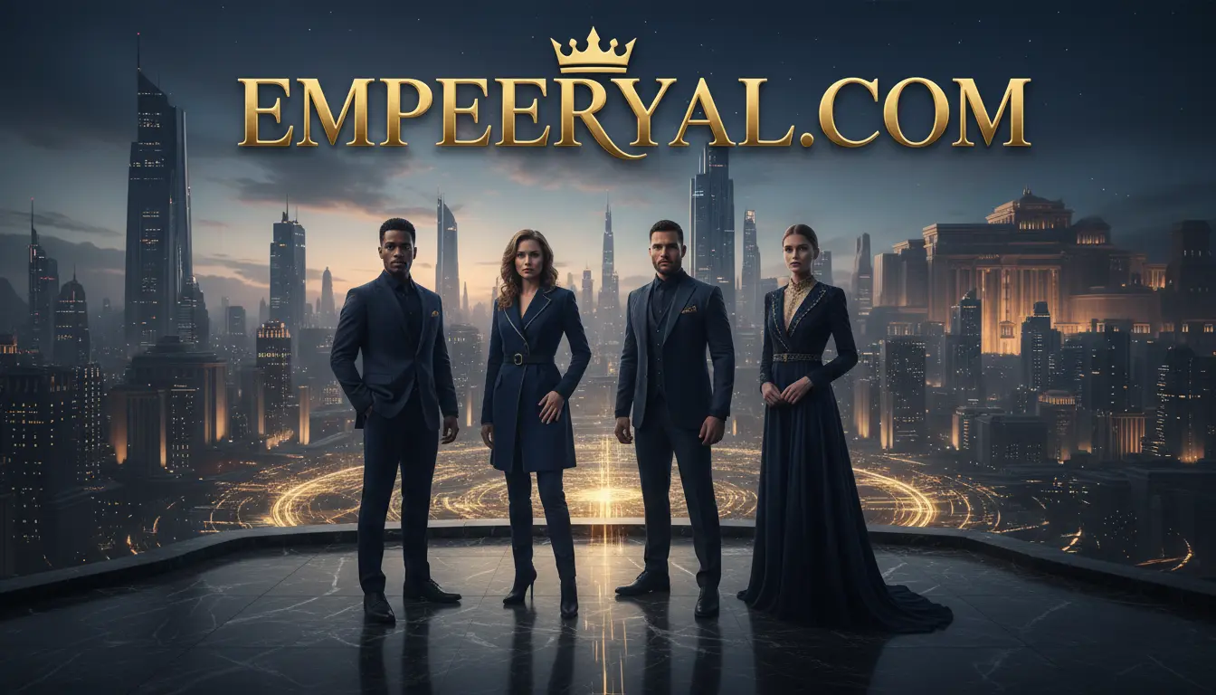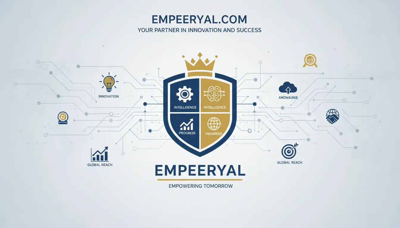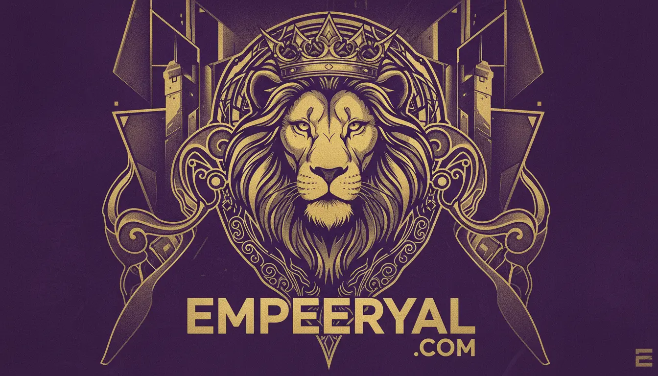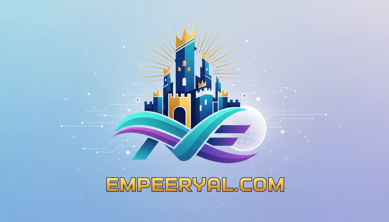 Text "EMPEERYAL" & "EMPEERYAL.COM" centered on a dark, futuristic background with an abstract, glowing blue & gold crown.